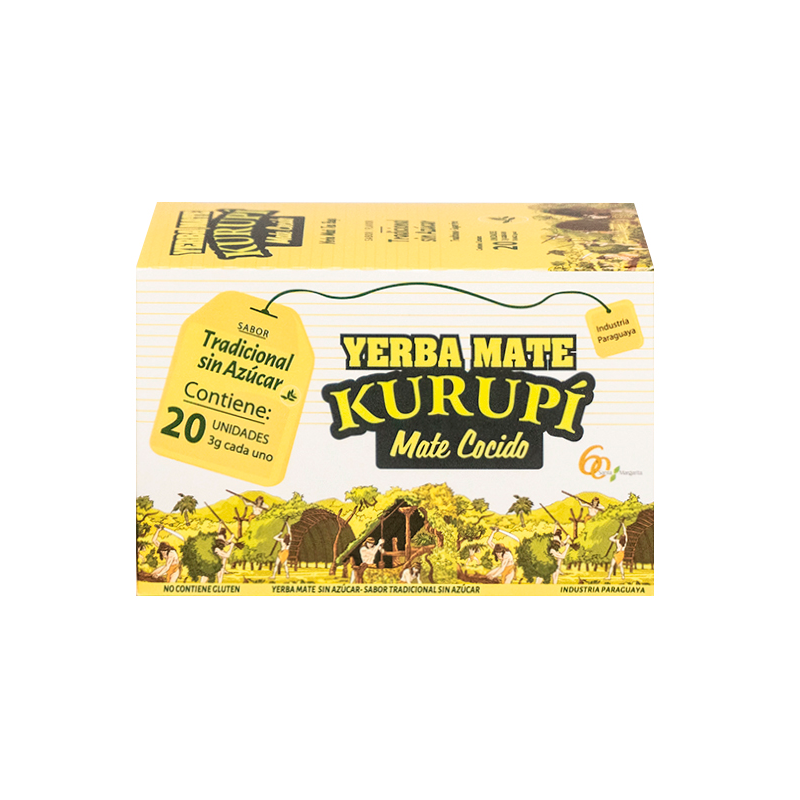El Mate Cocido Kurupí es un preparado a base de hojas de yerba mate y azúcar orgánica especialmente torradas, rico en minerales y vitaminas. Pasa por un proceso de torrado, en el cual adquiere sabor y características propias inconfundibles. Indicado para los consumidores con paladar exigente, que aprecian saborear un buen cocido.